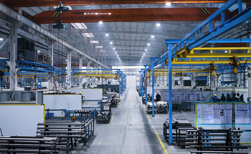 公司有活塞杆车间5000㎡,缸简车间12000,电镀车间4000,总装车间6000,材料仓库6000,配备有五轴加工中心、焊接机器人、自动焊机、刮削滚光机、卧式镗床、深孔钻床无心车床、数控车床等各类加工设备300多台套,并拥有镍铬、硬铬、锌镍等自动化电镀生产线和自动化油漆喷涂线。